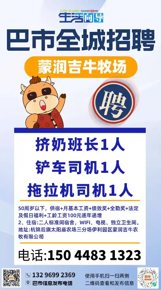 关键词:杭后招聘挤奶班长、铲车司机、拖拉机司机
