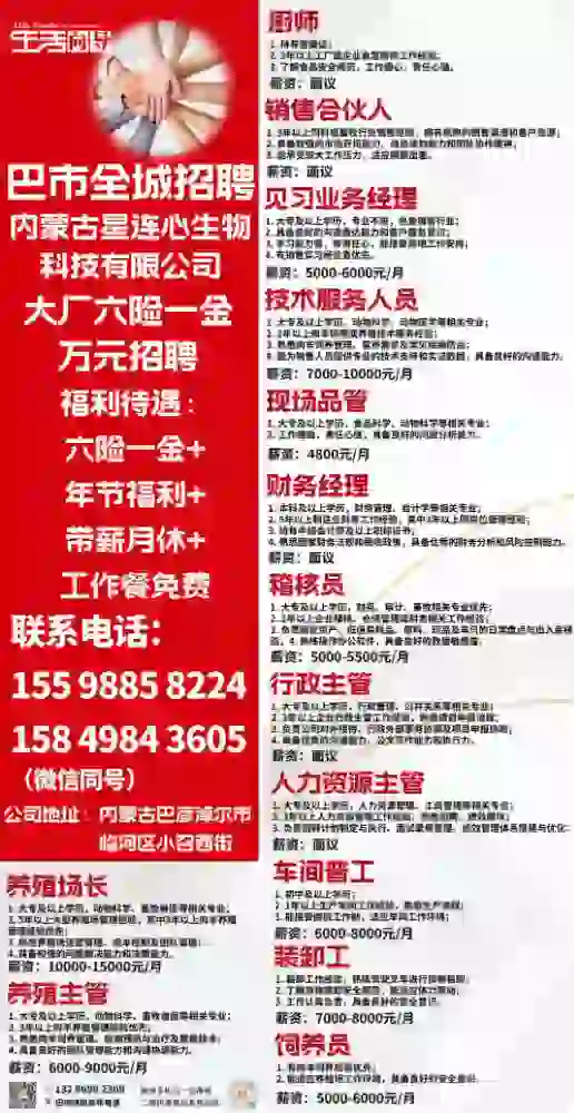 内蒙古星连心生物科技有限公司招聘厨师