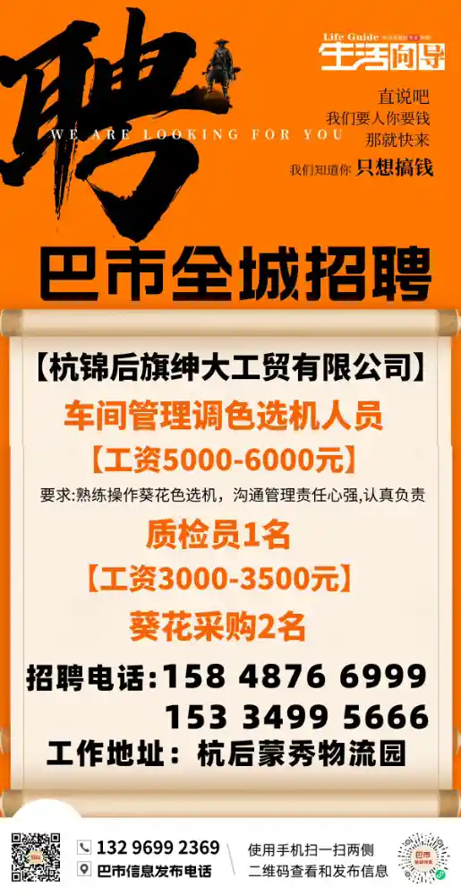 关键词:杭后保姆、质检、采购、车间管理调色选机人员