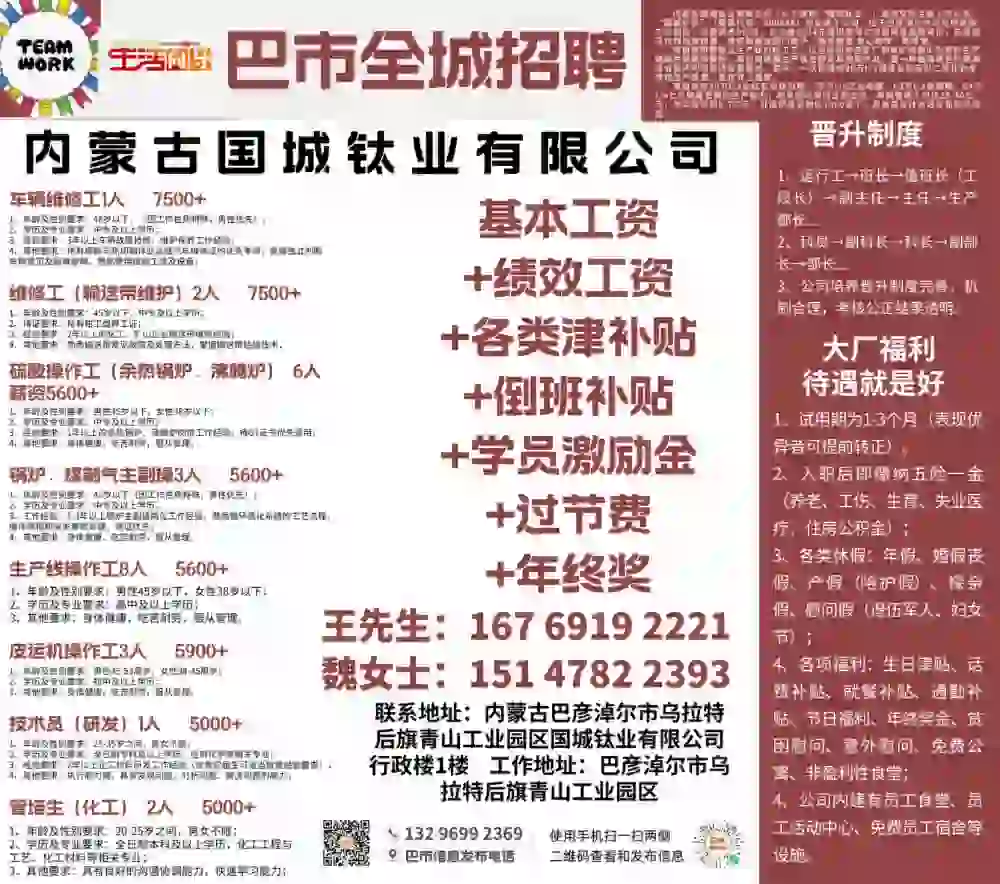 工作地址:巴彦淖尔市乌拉特后旗青山工业园区