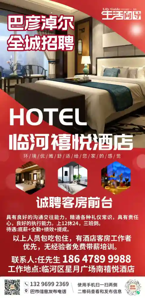 工作地点:临河区星月广场南禧悦酒店