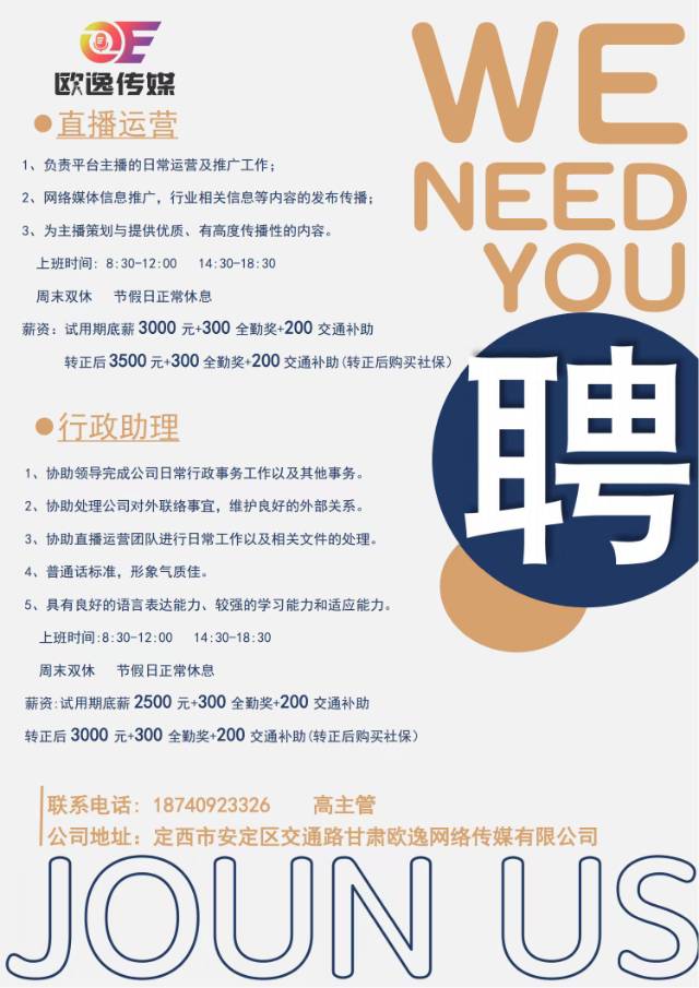 🍀🍀【 新媒体运营招直播运营及行政助理】