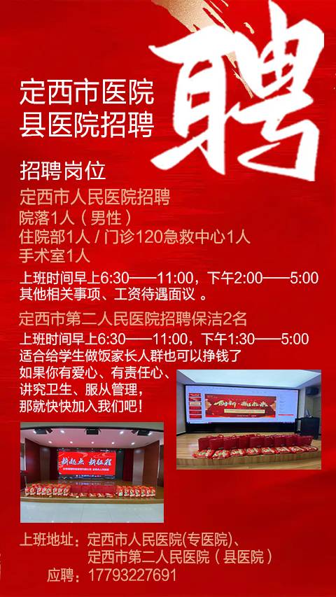 🔻上班地址:定西市人民医院(专医院)、定西市第二人民医院(县医院)