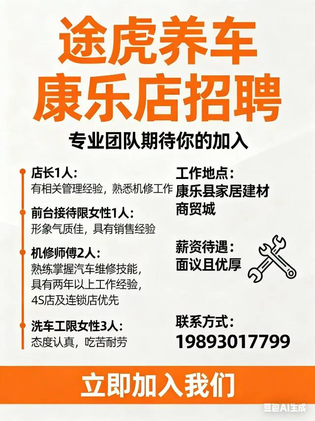 🍀途虎养车康乐店招聘公告