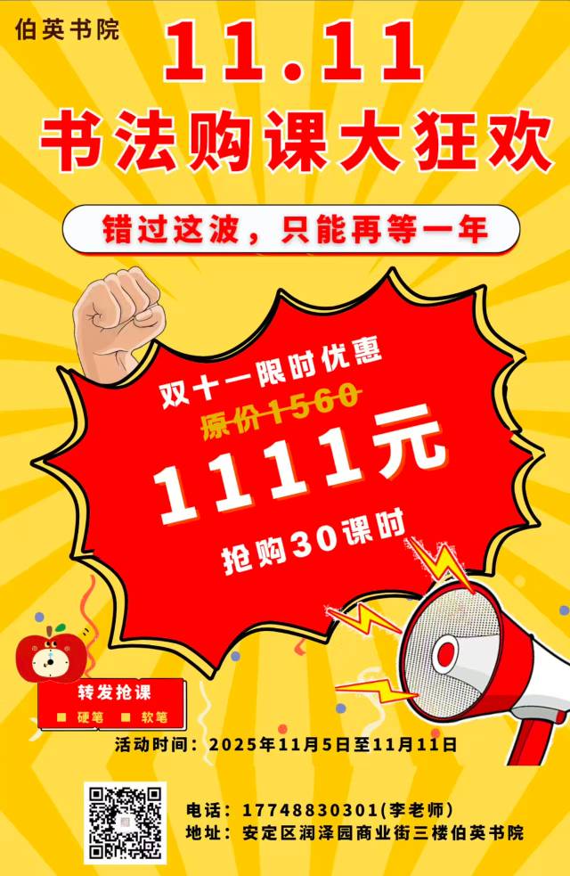 伯英书院双十一书法购课狂欢来袭!