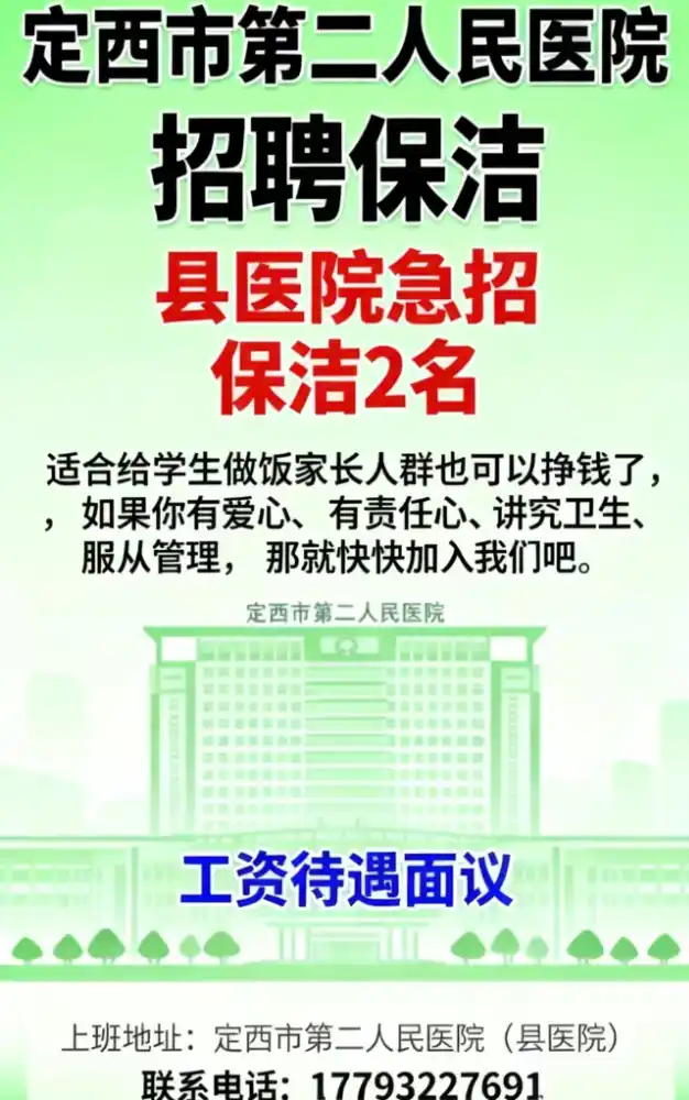 🍀🍀【定西市第二人民医院招聘保洁】
