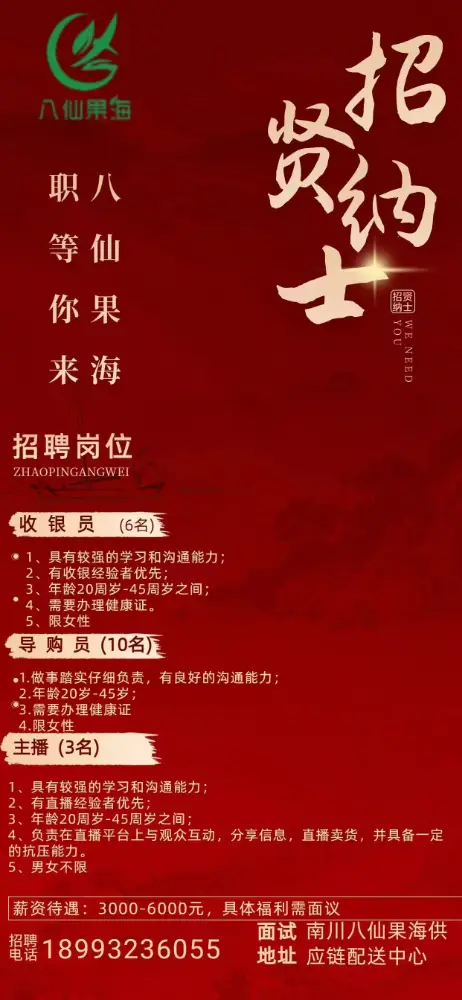 定西八仙果海高薪招聘
