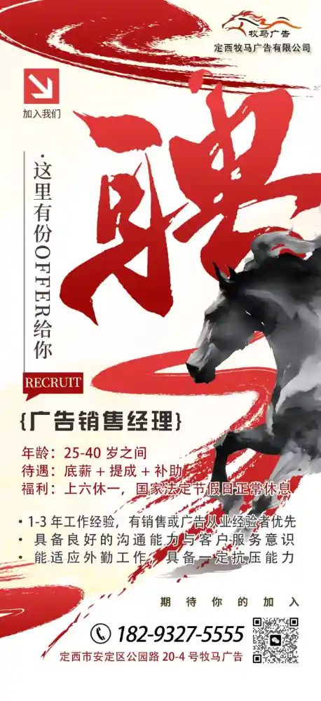 ☘️☘️【定西牧马广告有限公司高新诚聘】