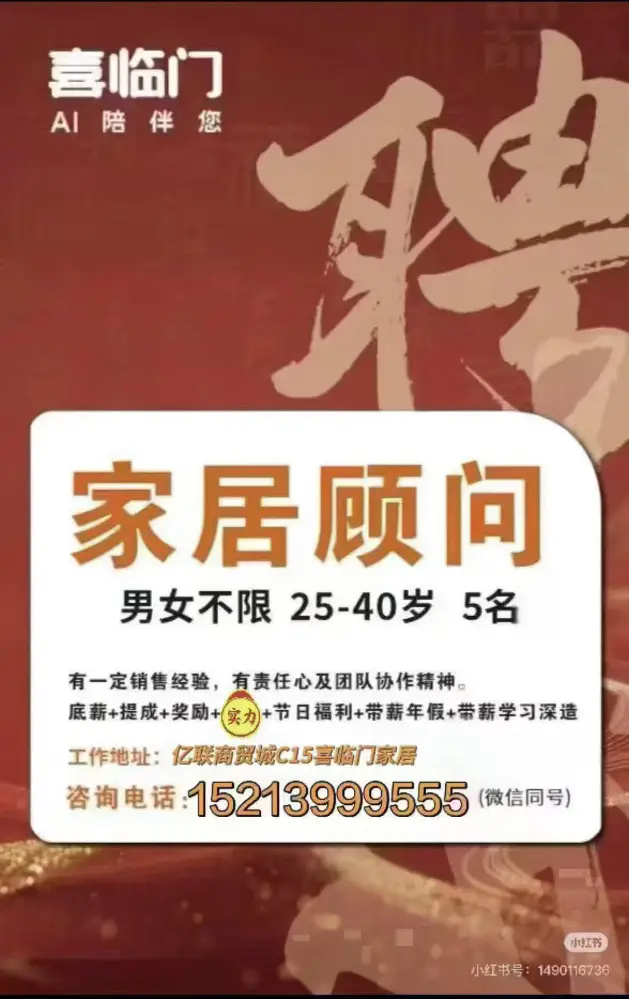 家具店高薪招聘