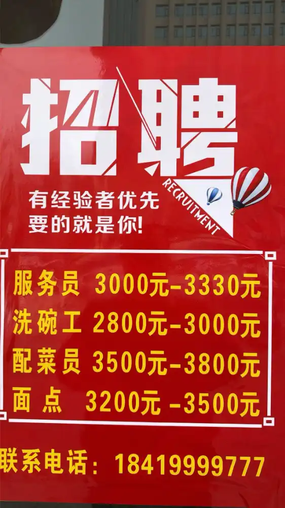 1️⃣服务员 3000-3330元