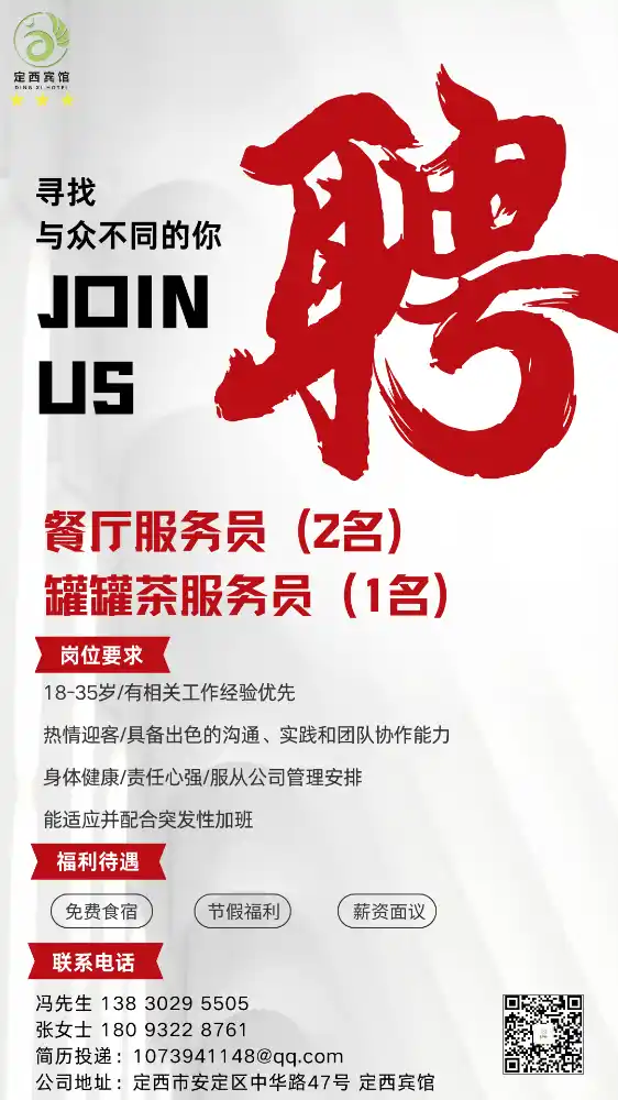 🍀🍀【定西宾馆招聘】