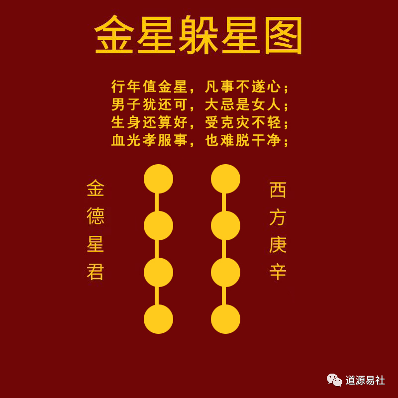 7、金星吉凶参半(生运。贵人见喜,添人进口。婚姻嫁娶,恐有肚腹之灾。出入提防小人。明月被遮蔽,谋事皆难成。男人要躲星,女人要顺星。)