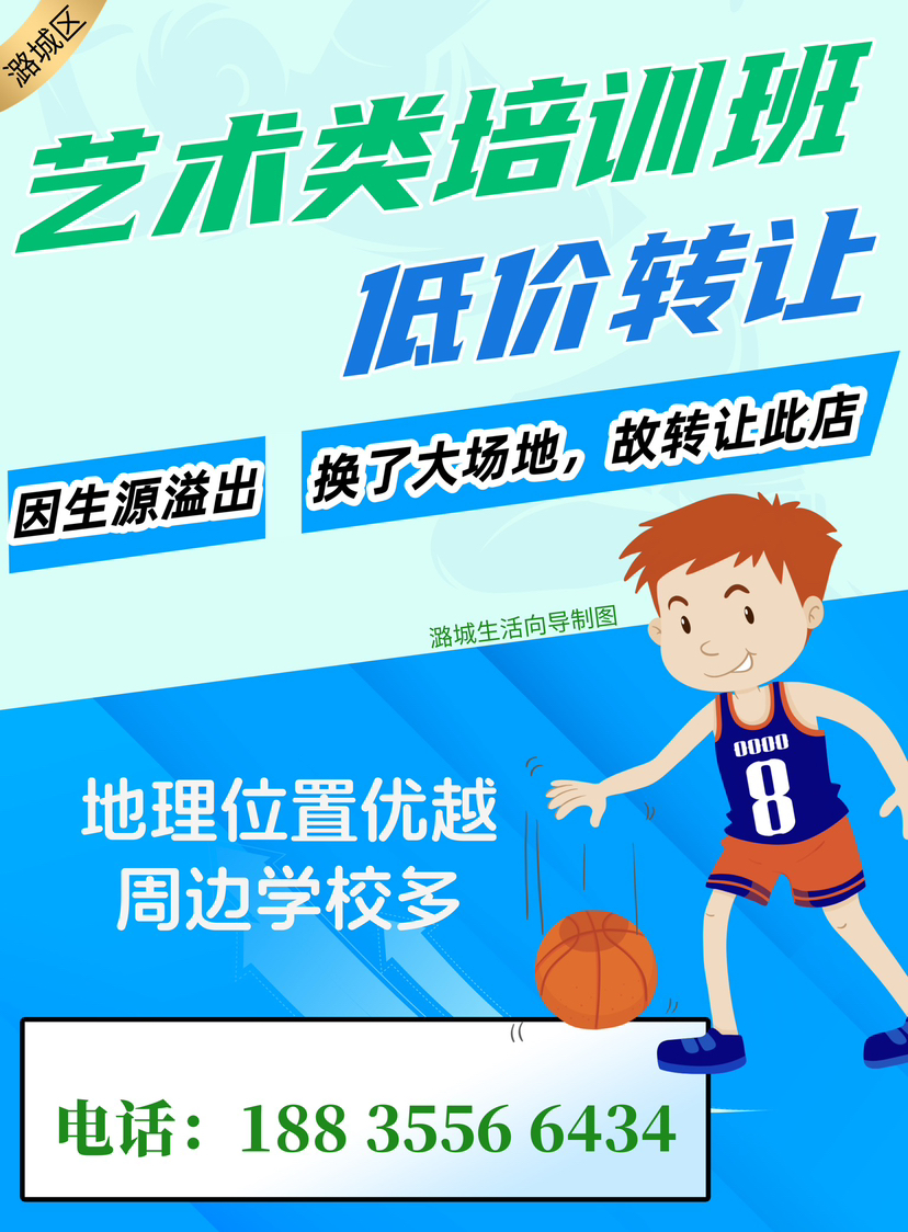 艺术类培训班转让:地理位置优越,周边学校多。因生源溢出,换了大场地,故转让此店。