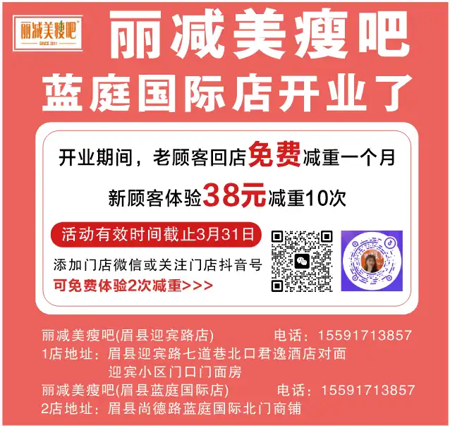 丽减美瘦吧(眉县迎宾路店) 。电话:15591713857。